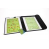 It comes with 22 magnetic pawns and a non-permanent felt pen.