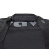 Nylon bag with robust zippers and shoulder strap.
